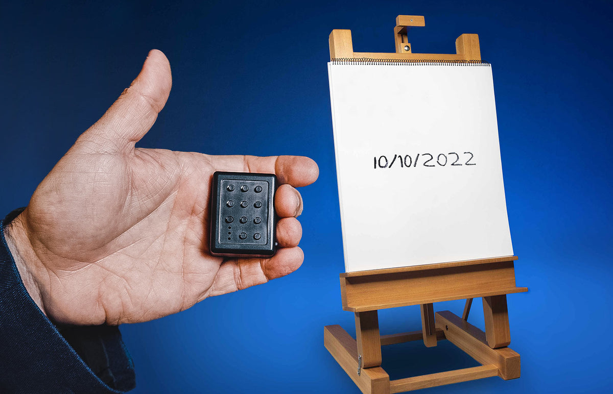 Com o simples toque de um botão, é possível introduzir horas, números, datas e cartões de forma invisível. O comando remoto também permite ao artista inserir palavras, como num antigo Nokia.